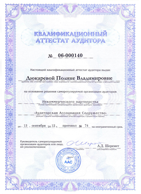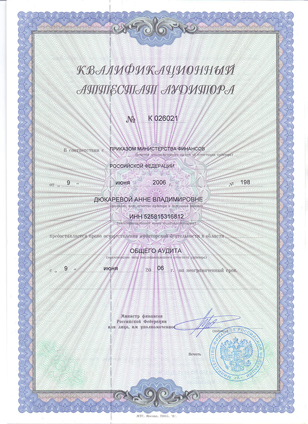 Директор фирмы за активное участие в развитии аудита и подготовке профессиональных бухгалтеров неоднократно награждалась почетными грамотами Института профессиональных бухгалтеров и аудиторов России и нижегородского территориального института профессиональных бухгалтеров.